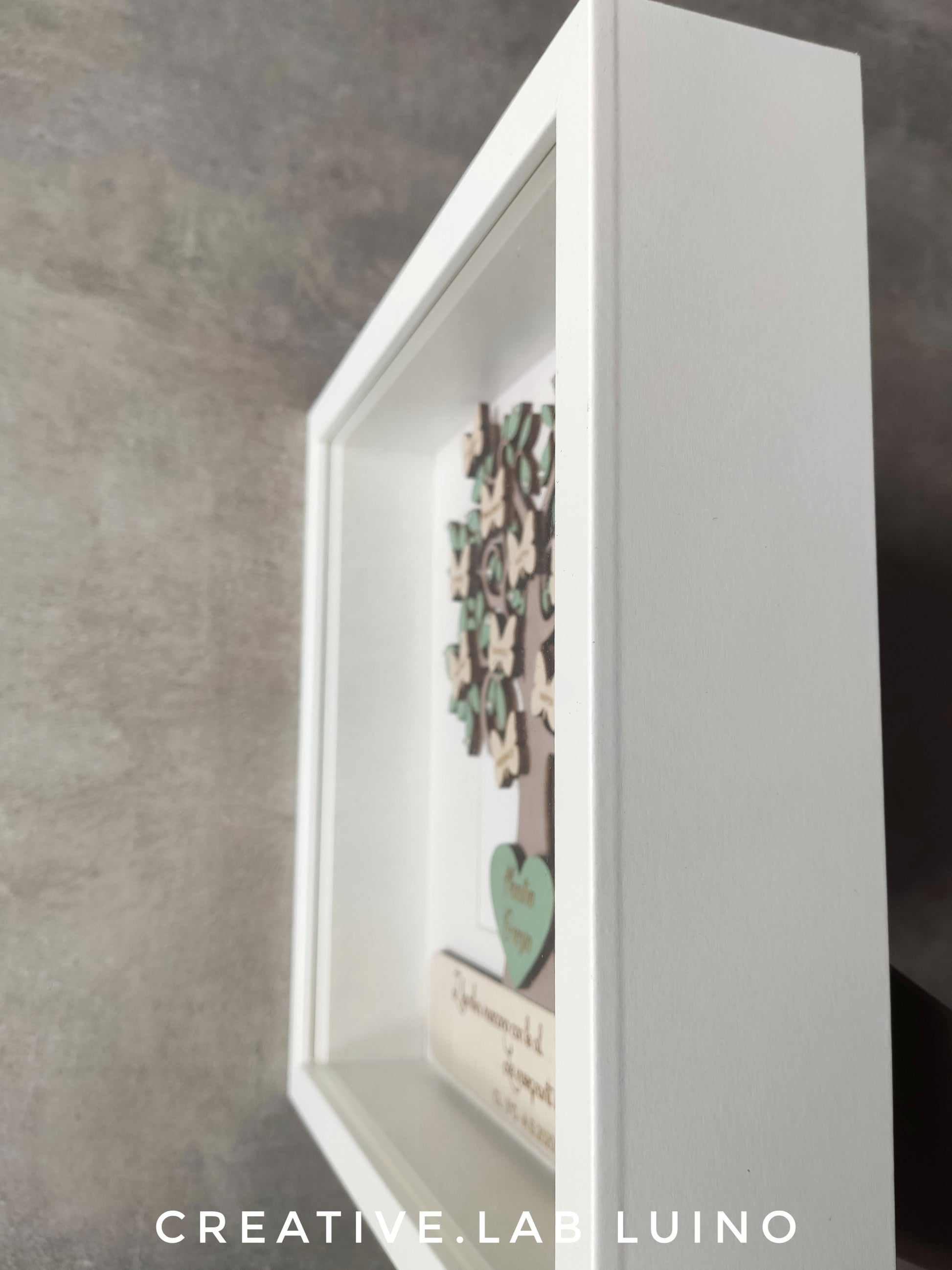 Design Unico: Cornice artigianale con elegante design dell'albero della vita, simbolo di crescita e connessione.