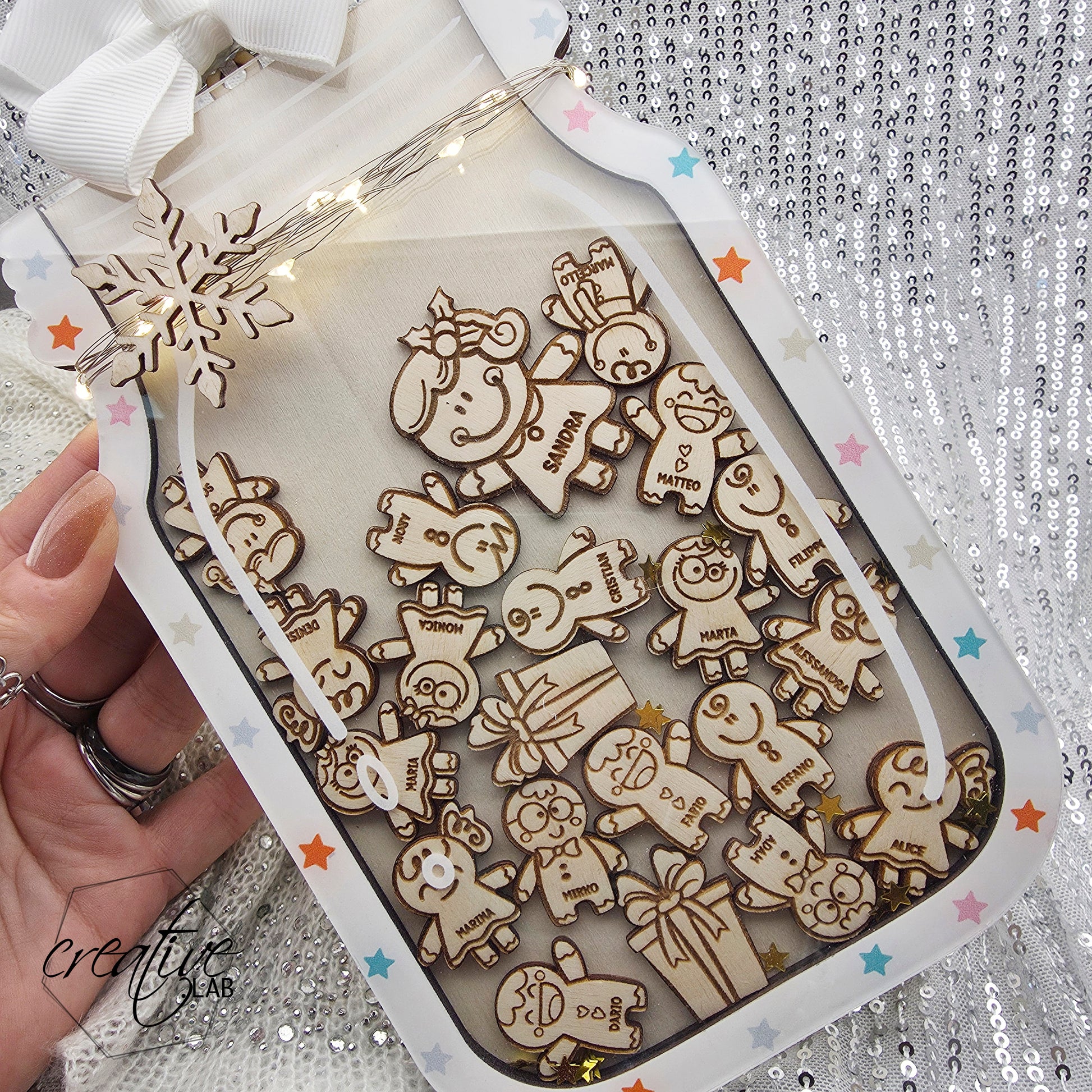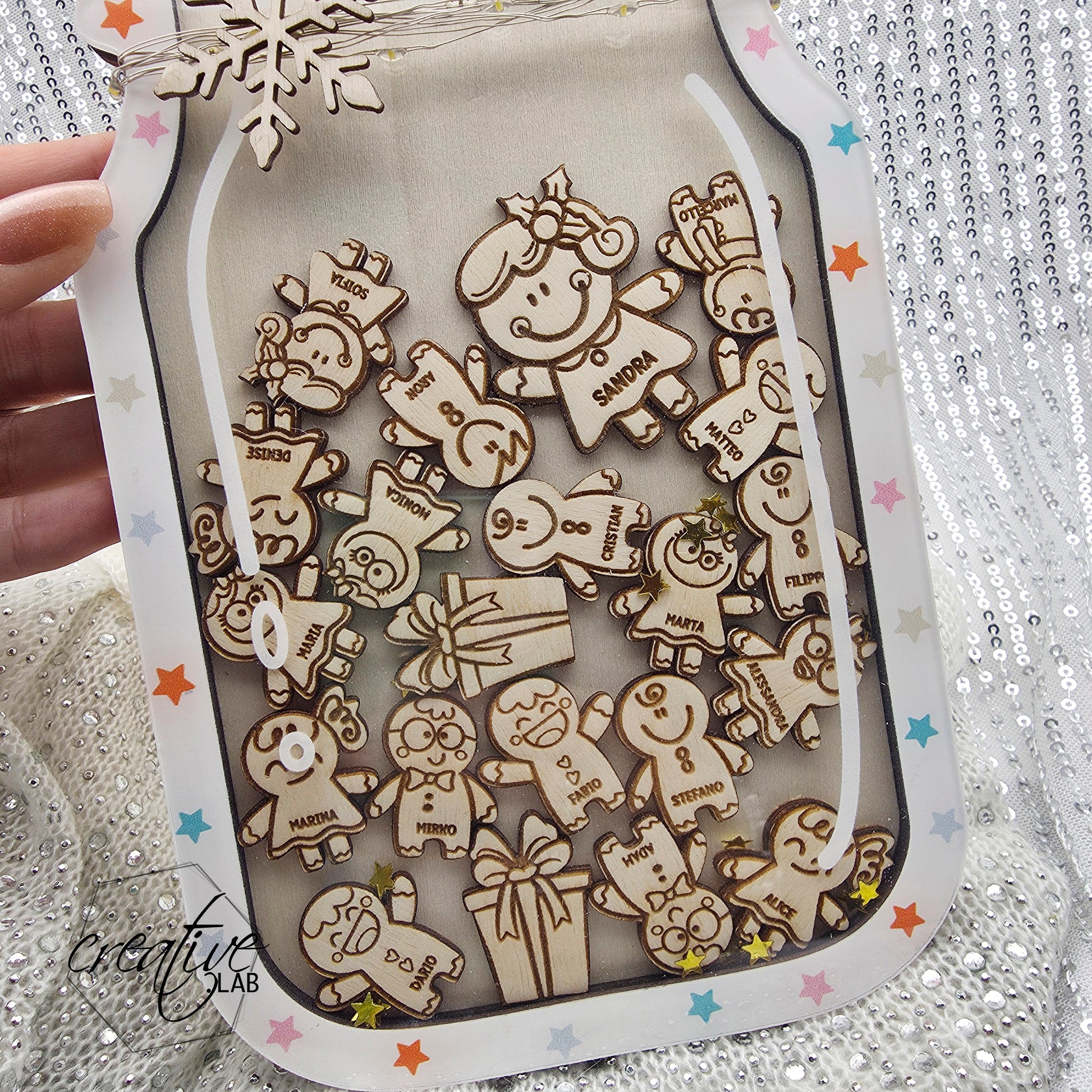 Barattolo natalizio artigianale in legno e plexiglas, realizzato con materiali di qualità e cura dei dettagli.
