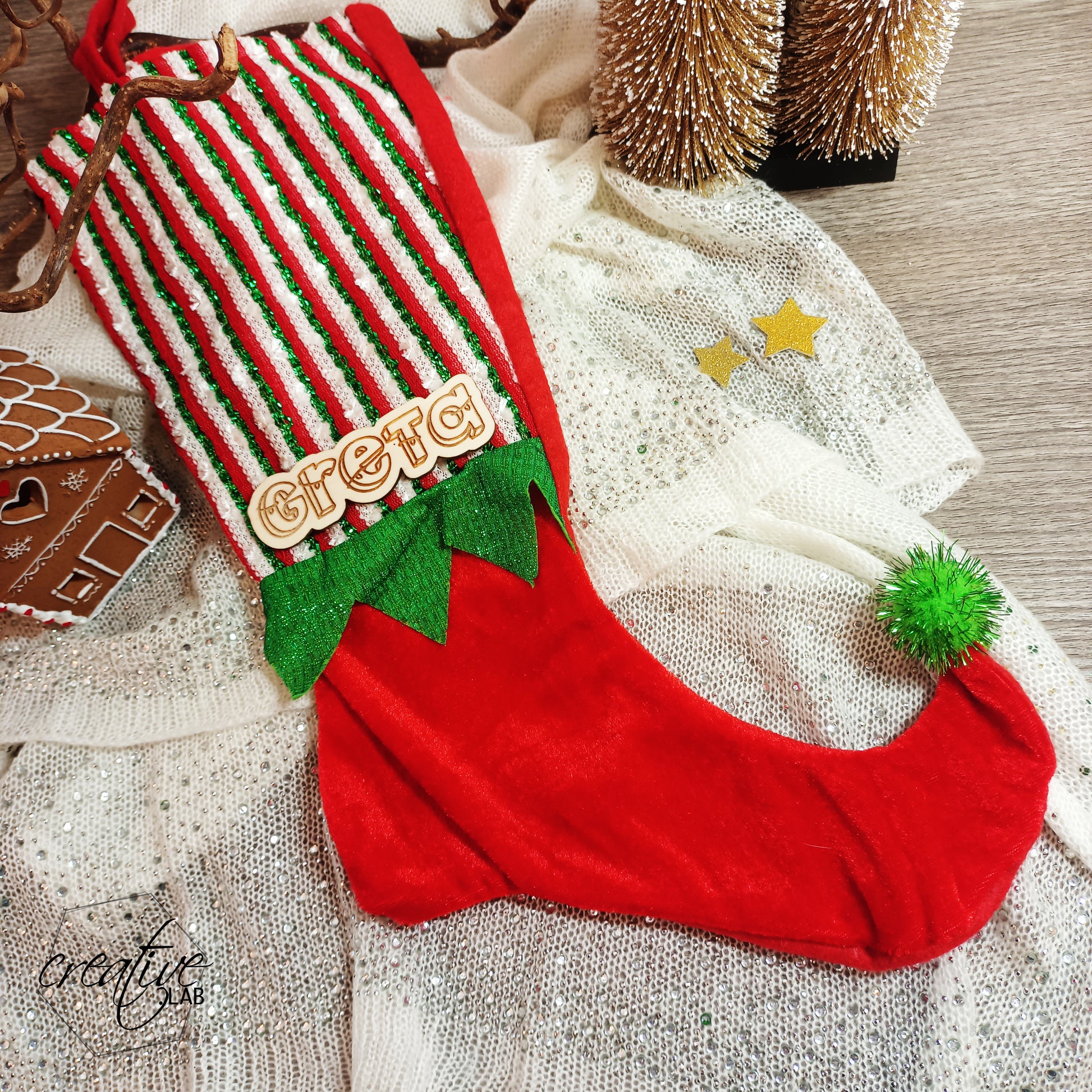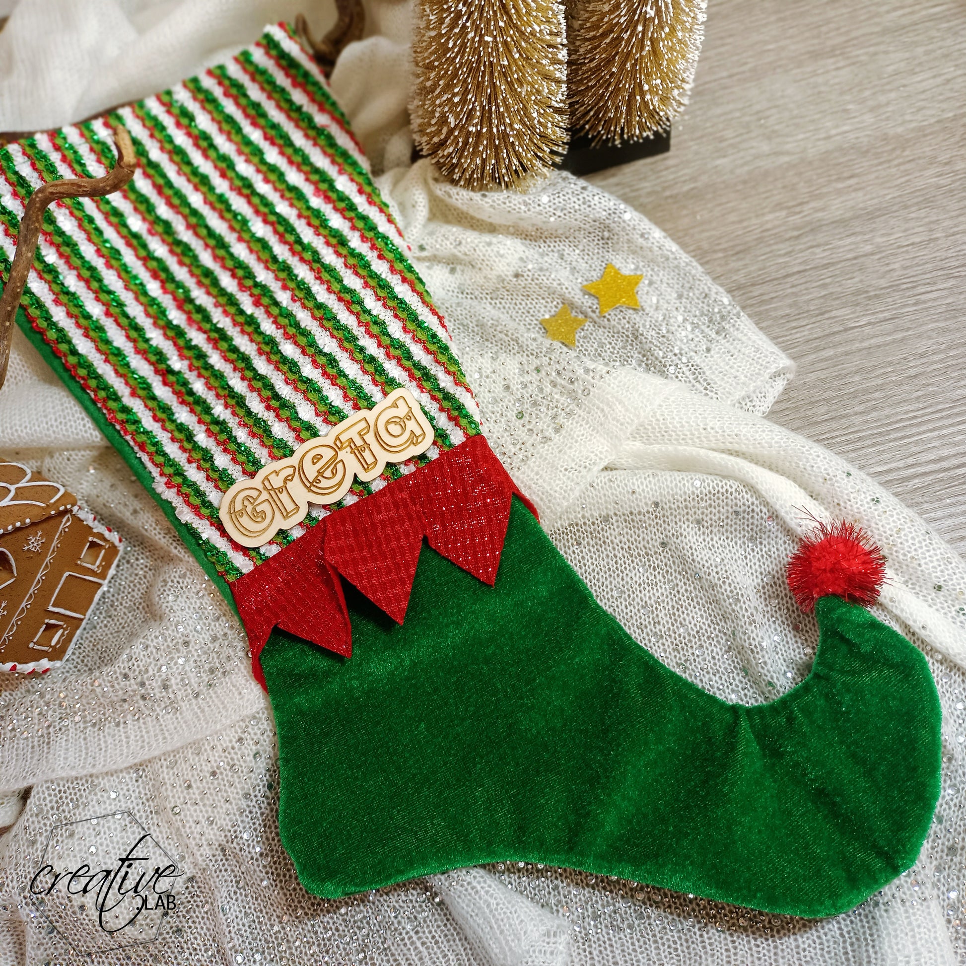 Perfetta da appendere al caminetto o come decorazione per la tua casa durante le feste, la calza natalizia da elfo di Babbo Natale è un must-have per ogni appassionato del Natale. Non lasciarti scappare l’opportunità di creare ricordi unici: personalizza la tua calza e preparati a festeggiare!