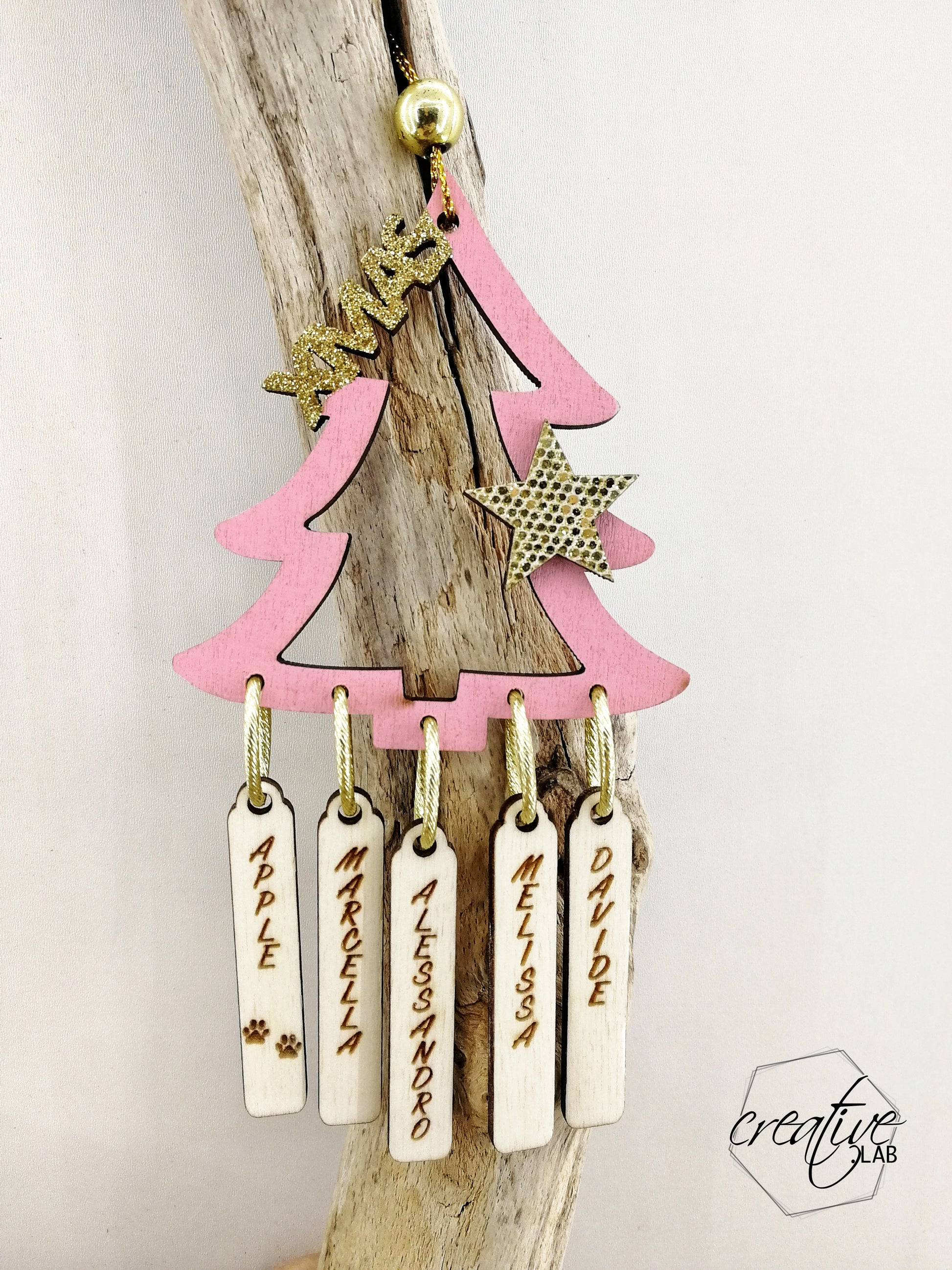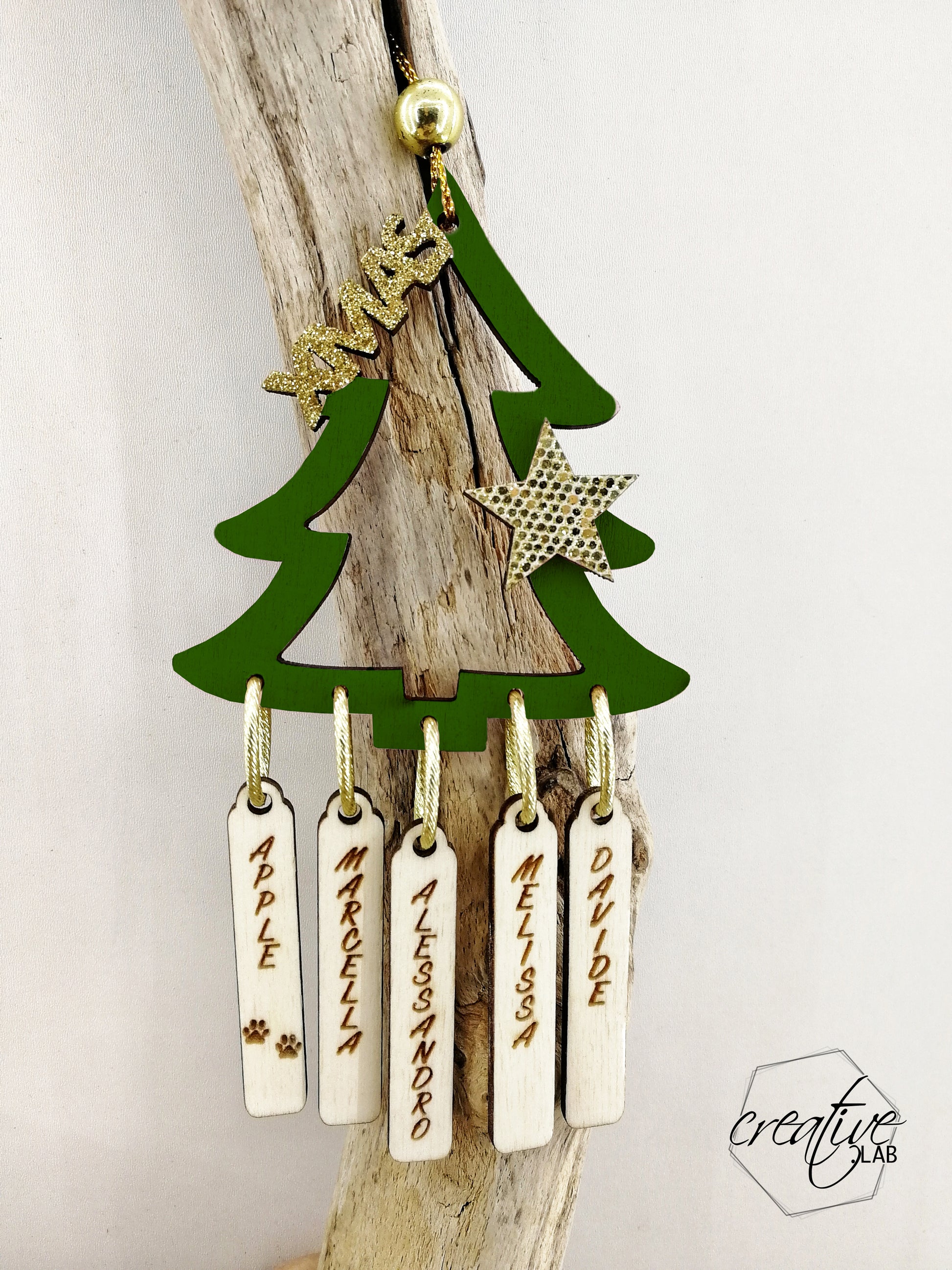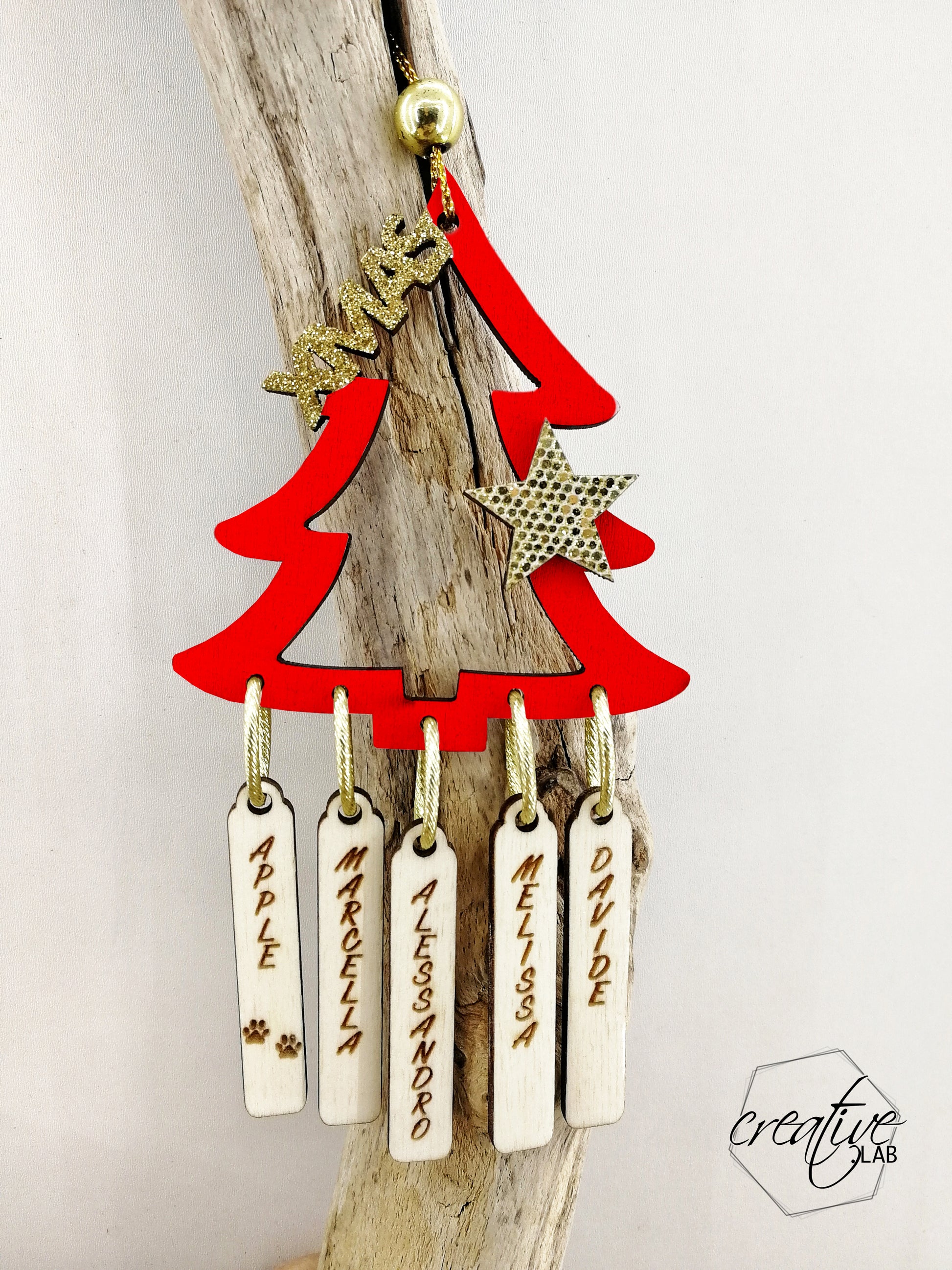 Decorazione Natalizia albero con nomi della famiglia