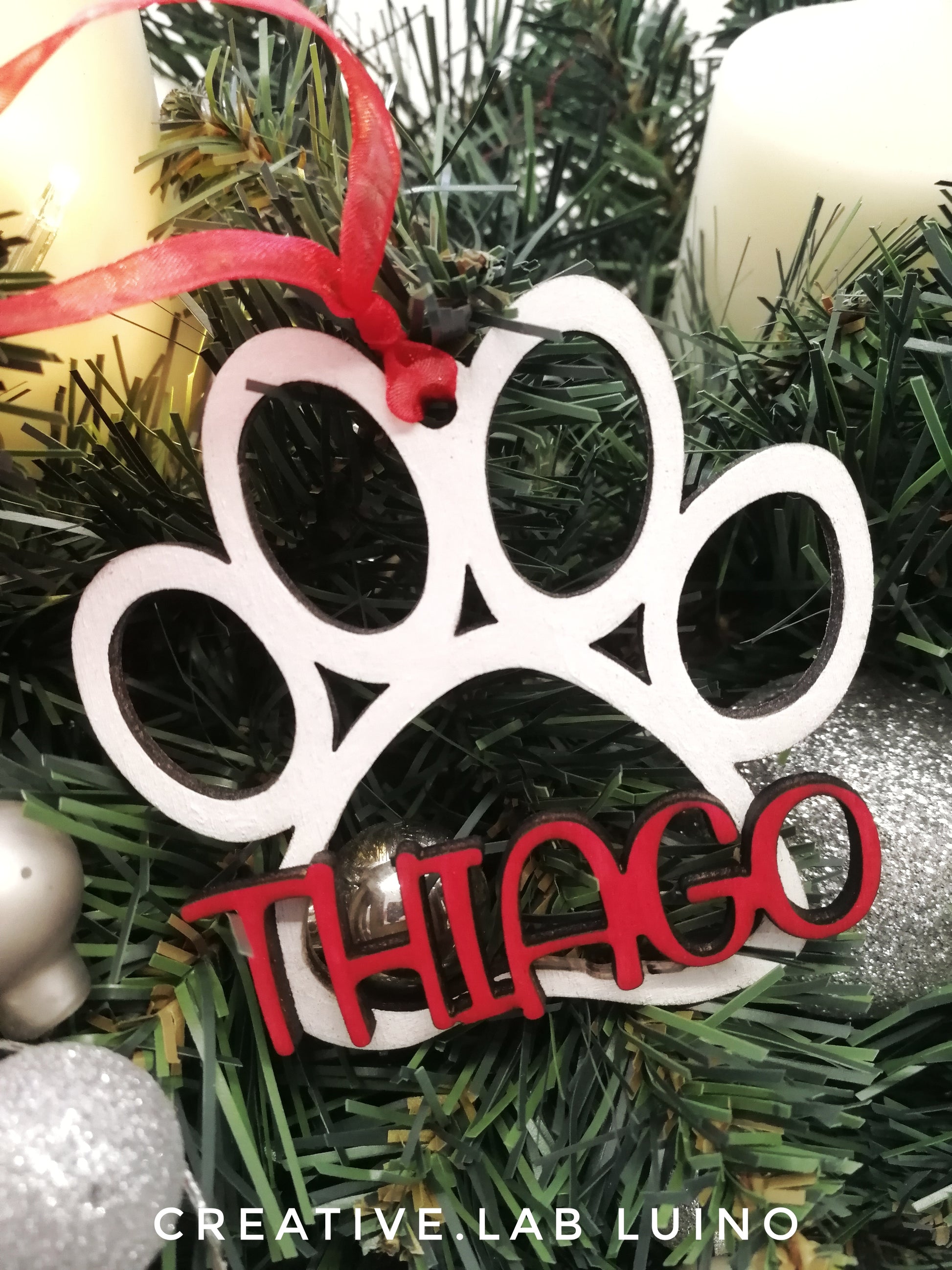 Decorazione Natalizia Personalizzabile con nome dell'amico a quattro zampe su zampa
