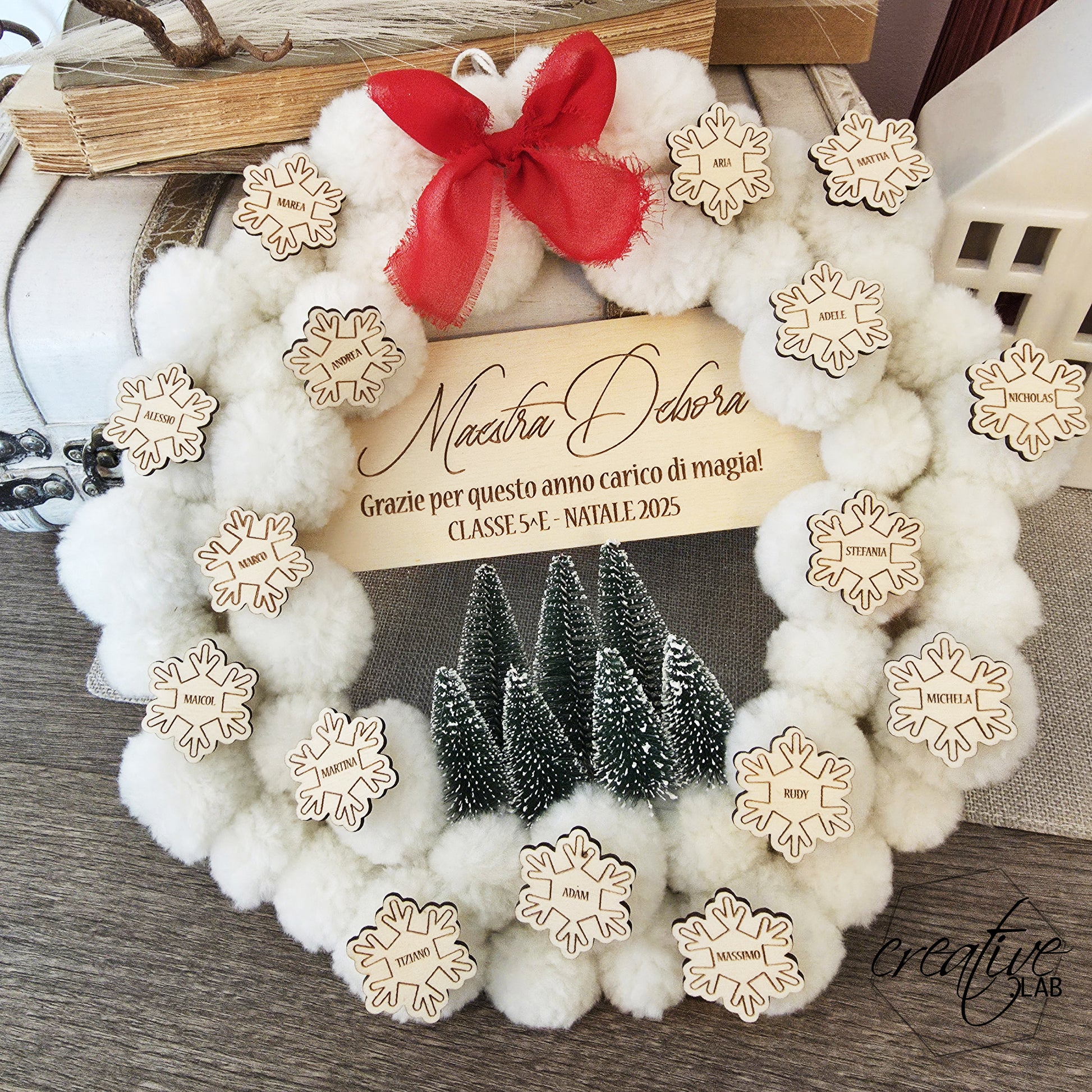 - Ghirlanda natalizia artigianale in morbidi pom pom, forma circolare elegante