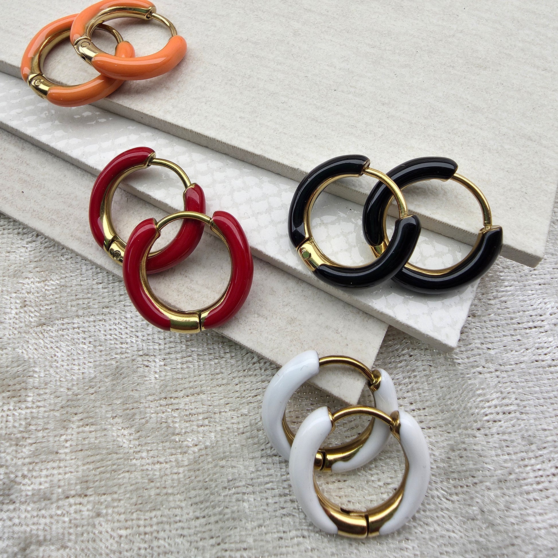 Gli orecchini in acciaio ad anello smaltati sono un'ottima scelta per chi ama l'originalità e la semplicità, senza rinunciare a un tocco di colore. Perfetti per completare e valorizzare qualsiasi outfit, sono un must-have nel guardaroba di ogni amante dei bijoux.